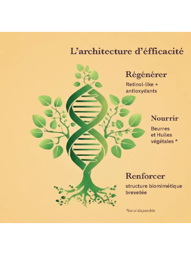 La formule associe des lipides biomimétiques (dont un lipide naturellement présent dans le sébum), des lipides polaires riches en phytocéramides et une trame nourrissante (beurre et huiles). Cette combinaison soutient la cohésion du ciment intercornéocytaire, renforce le film de surface et stabilise le confort dans la durée.