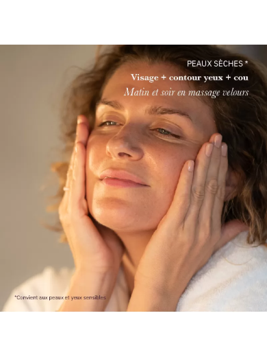 UTILISATIONJ'aime beaucoup cette crème qui permet une bonne hydratation et qui laisse une peau très souple. Gros Avantage : un seul produit pour matin, soir, cou, visage, contour des yeux.... Seule inconvenient, la couleur jaune qui reste sur la taie d'oreiller ......FRANCINE | 20/02/2024