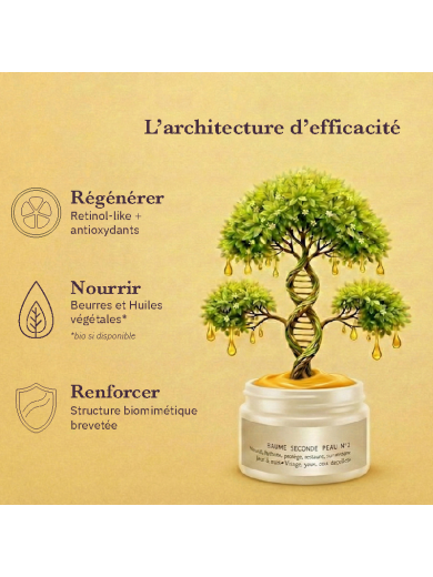 Le Baume n°2 s’inscrit dans une approche de physiologie de barrière : une peau qui tiraille ou se déshydrate n’a pas seulement besoin d’eau, mais d’une architecture lipidique capable de la retenir.