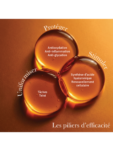 l'excellence!une texture soyeuse, un velouté de peau, de l'éclat, une unification du teint car les tâches pigmentaires ou de l'âge s'estompent avec de la persévérance!: et des compliments sur ma peau ! un produit "multi soins" unique, dont l'investissement est très vite rentabilisé en se délestant de nombreux autres produits à ciblage unitaire! la fidélité est bien récompensée ! un secret à ne dévoiler qu'à vos meilleures amies!!Odile | 08/10/2022