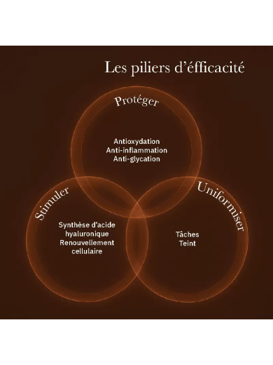 l'excellence!une texture soyeuse, un velouté de peau, de l'éclat, une unification du teint car les tâches pigmentaires ou de l'âge s'estompent avec de la persévérance!: et des compliments sur ma peau ! un produit "multi soins" unique, dont l'investissement est très vite rentabilisé en se délestant de nombreux autres produits à ciblage unitaire! la fidélité est bien récompensée ! un secret à ne dévoiler qu'à vos meilleures amies!!Odile | 08/10/2022